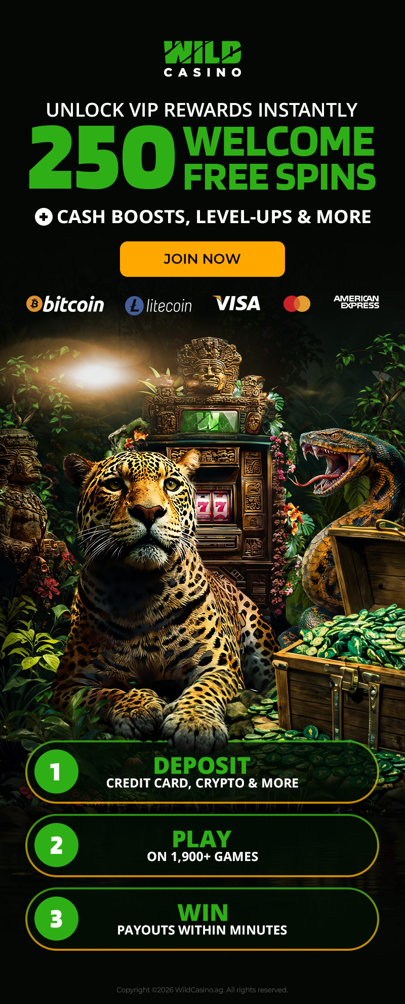 1. 250 Free Spins offer is only available to players making their first deposit.